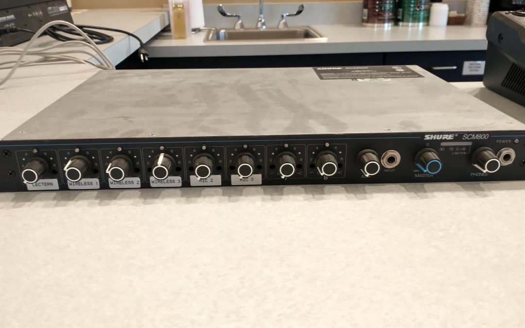 Used, good condition. The Shure SCM800 microphone mixer offers compatibility with any low-impedance, balanced microphone, including wireless microphone systems. Includes 48 volt phantom power for each input, front-panel headphones output with level control, adjustable EQ, highly RF resistant chassis and circuitry, phantom power LED, manual mixing, and peak-responding output limiter. An Aux input enables connection to additional SCM-800 mixers for up to 32 microphone and line level inputs. The SCM800 is compatible with Shure SCM410 and SCM810 automatic microphone mixers.