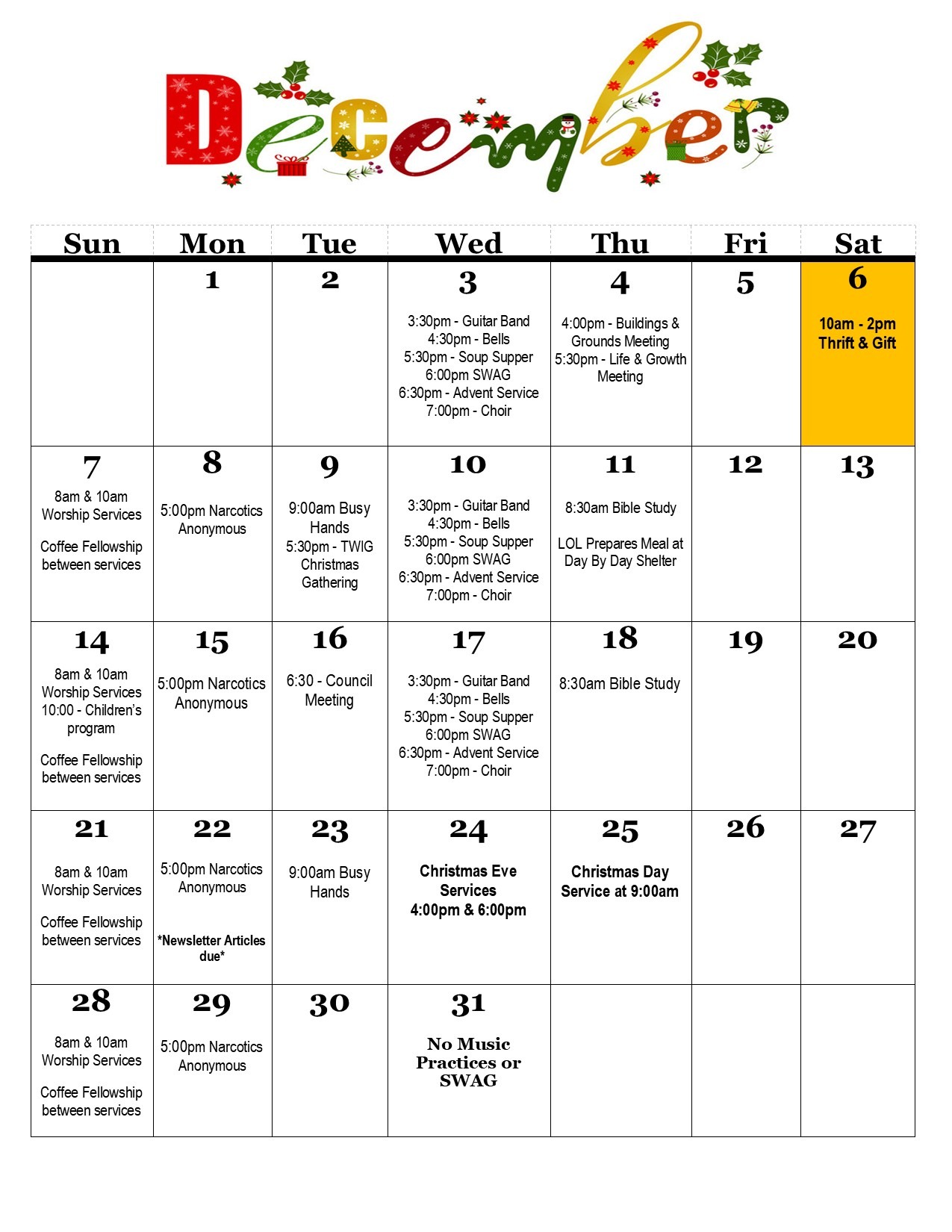 December 2025 Calendar